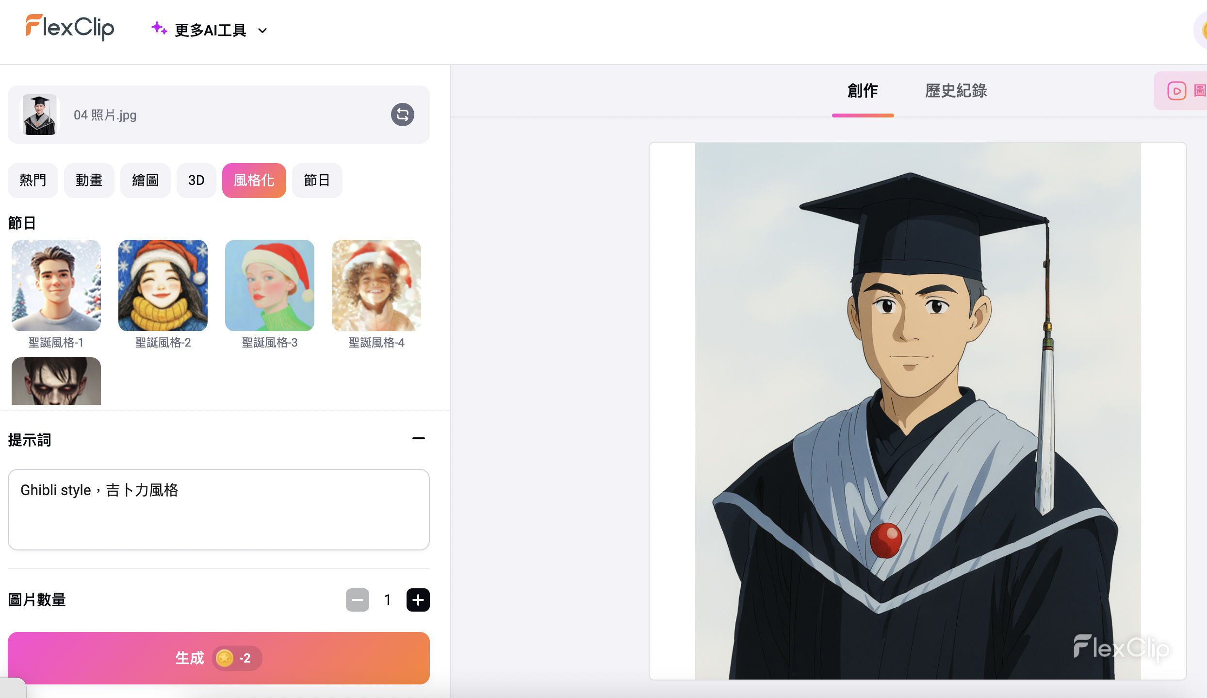 FlexClip —— 影片與圖片皆可 AI 轉換為吉卜力風格