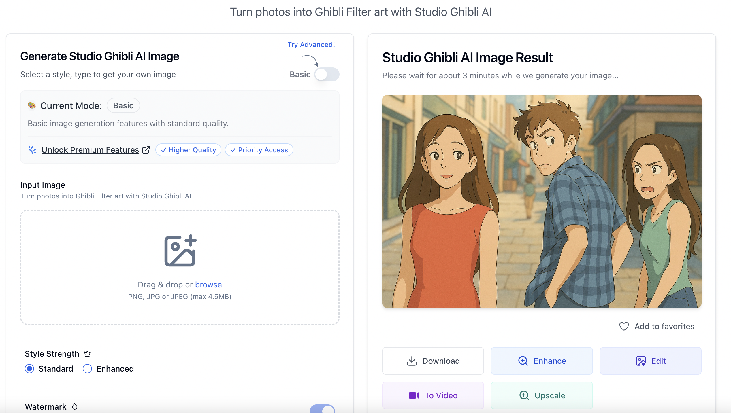 - 點擊生成,即可獲得具有濃厚 吉卜力風格 的動畫插圖。