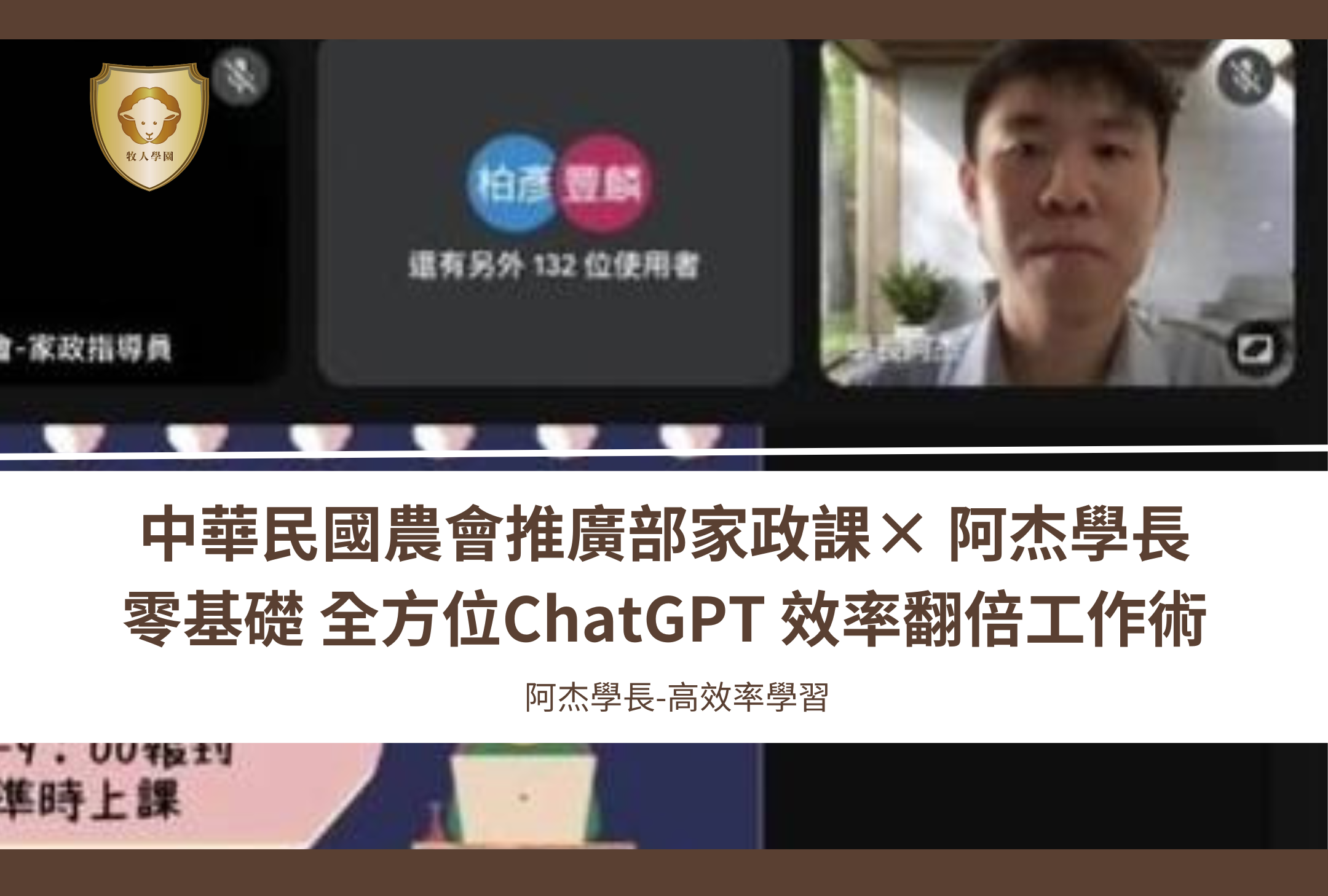本次於 中華民國農會推廣部 辦理的《零基礎 AI 效率翻倍工作術》,由具備企業與公部門內訓經驗的 阿杰學長 親自授課,協助同仁以實務導向方式,將 AI 工具實際導入日常工作流程。