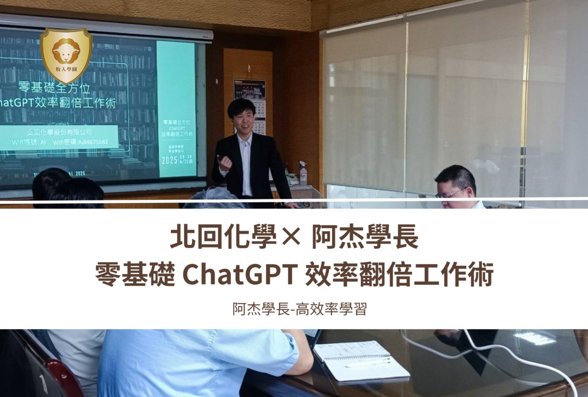 本次於 北回化學 進行的《零基礎 AI 效率翻倍工作術》,由企業內訓經驗豐富的 阿杰學長 親自授課,協助同仁以最貼近實務的方式,將 AI 工具真正導入日常工作流程。