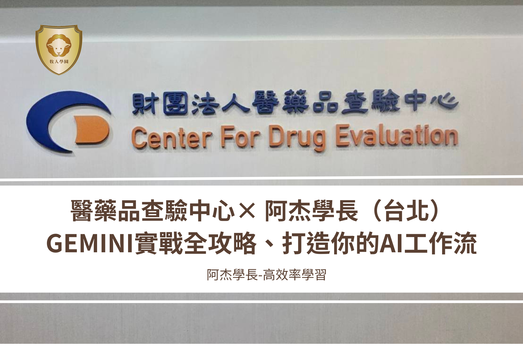 本次由醫藥品查證中心邀請專業AI講師-阿杰學長,針對內部同仁規劃「GEMINI實戰全攻略」課程,從基礎認識到進階應用,協助學員建立完整AI工作流程,讓AI真正成為日常工作的得力助手。